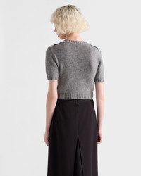 The bold geometric lines of the argyle motif enrich this short-sleeved sweater with a slim fit. The cashmere design combines softness and structure in a sophisticated silhouette. - Product code: P24T2P_172D_F0031_S_OOO - Short sleeves - Jacquard knit - Slim fit - Ribbed knit crew-neck - Raglan shoulder - Ribbed knit sleeve trim and hem - Embroidered logo - Imported - The model is 180 cm tall and wears a size 38 Height: 46cm MATERIALS Main material: 100% Cashmere