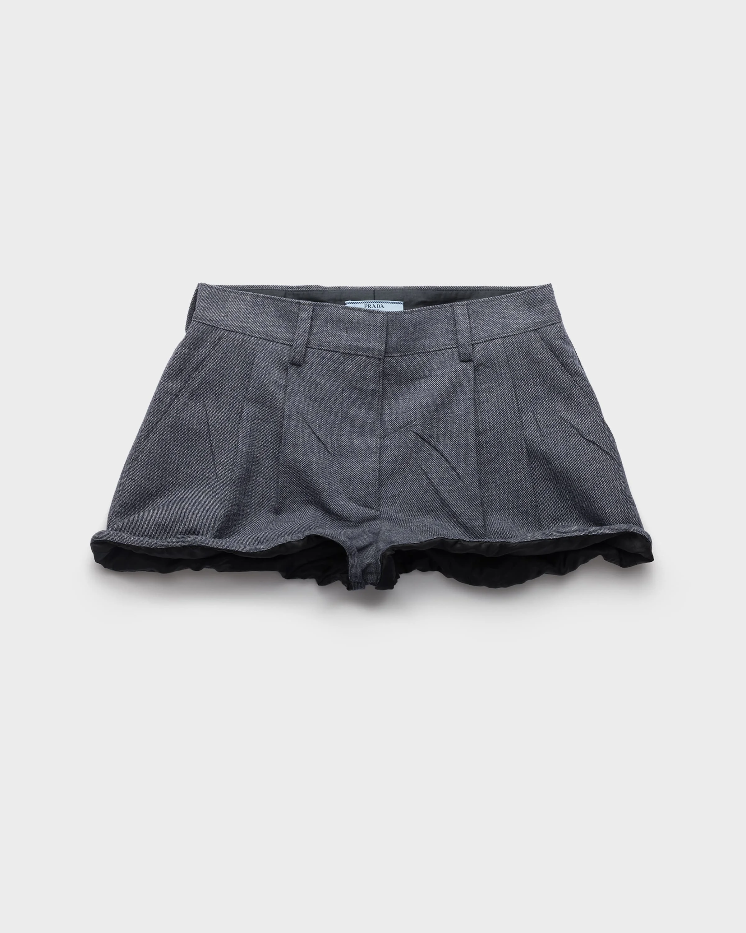 These shorts with a dynamic design, created with movement in mind, embody unconventional, contemporary style. The tailored silhouette made of grisaille is animated with shapeable elements that add a unique and unexpected character to the style. - Product code: P282J_15DJ_F0308_S_OOO - Lined garment - Zipper fly with hook - Logo label - Angled slash pockets - Back welt pockets with flap - Shapeable hem - Imported Height: 40cm MATERIALS Main material: 100% wool