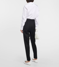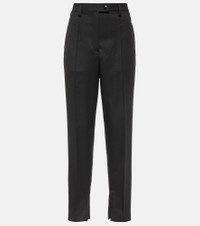 Prada takes Italian heritage into a distinctly modern direction with a streamlined and fashion-forward approach. Cut from a wool-blend fabric, these tapered pants are truly versatile and will blur the lines between office and after-hours styling. Product Details - Material: 97% wool, 2% polyamide, 1% elastane - Care instructions: dry clean - Made in Italy - Designer color name: Nero - Pocket lining: 78% cotton, 19% polyamide, 3% elastane - Closure: snap-buttoned fastenings, zipper fastening, hook fastening - Pockets: zipped pockets - Belt loops - Item number: P00850656 Size & Fit - True to size - Tapered leg - High-waisted - The model seen in the picture is 178cm-5'10" and wearing a size IT 40
