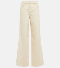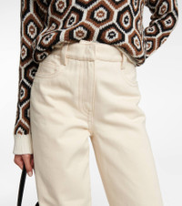 These nauhgies-insired jeans from Prada are expertly made in Italy. They have a relaxed fit and feature a flattering high-rise with wide legs. Product Details - Lining: 100% cotton, partially lined - Pockets: five pockets - Belt loops - Designer color name: Natural - Made in Italy - Closure: zipper, hook fastening - Care instructions: dry clean - Material: 100% cotton - Item number: P00760014 Size & Fit - Fits small to size - we recommend trying one size larger - Stiff material - Non-stretchy fabric - Wide-leg - Low-rise - The model seen in the picture is 178cm-5'10" and wearing a size 25
