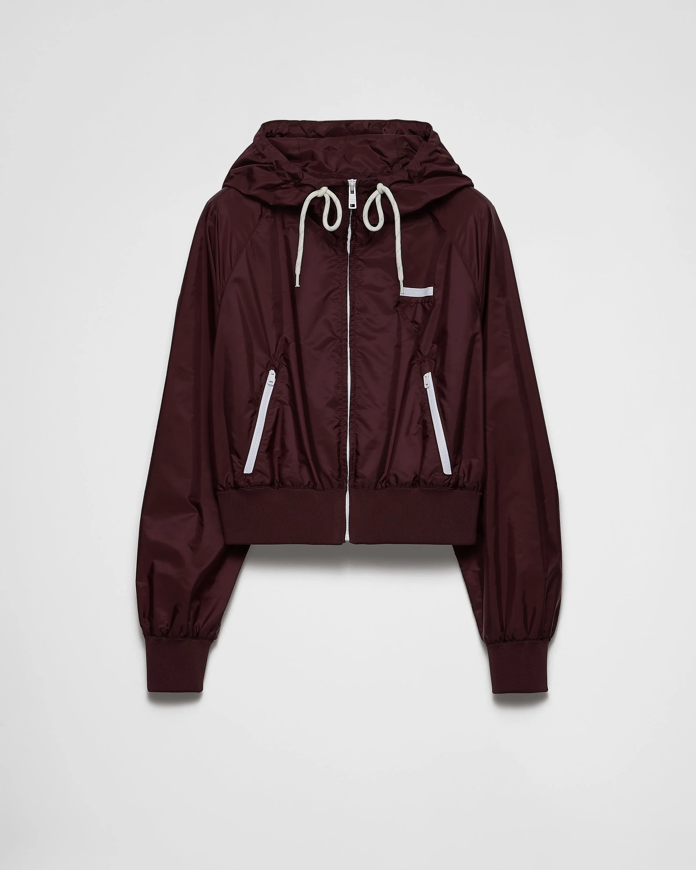 Techwear inspired this blouson jacket with minimalist lines made of Re-Nylon. The light, versatile silhouette is animated by graphic contrasts that underline the clean lines of the design. For sustainable care to preserve the product's characteristics and reduce microfiber shedding, we recommend not washing the item too often. Let the product air out after every use and have it dry cleaned at a specialized ecological dry cleaners. - Product code: 292268_1WQ9_F0403_S_OOO - Unlined - Hood with drawstring - Long sleeves - Ribbed knit cuffs - Zipper closure - Zipper pockets - Conceptual triangle logo - Sartorial logo label - Ribbed knit hem - Imported - The model is 178 cm tall and wears a size 38 Height: 48cm MATERIALS Main material: 100% recycled polyamide