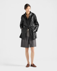 This caban jacket recalls the line of the raincoat but reimagines it in nappa leather with a fluid silhouette, and with a pressing process that gives it a vintage look. - Product code: 56A235_1834_F0002_S_OOO - Unlined garment - Regular fit - Center button closure - Hooded collar - Raglan sleeves - Wide welt pockets and small zipper pocket - Leather triangle logo - Pressed finished garment - Imported - The model is 178 cm tall and wears a size 38 Height: 78cm MATERIALS Main material: Lambskin
