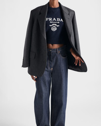 The Prada logo is featured in the contrasting intarsia knit that decorates this wool and cashmere crew-neck sweater. The sleek, iconic garment has a boxy silhouette and is completed with ribbed knit trim. - Product code: P24U1T_1YMW_F0008_S_231 - Long sleeves - Intarsia knit - Boxy fit - Ribbed knit neck - Regular shoulder - Ribbed knit cuffs and hem - Intarsia logo - Imported - The model is 177 cm tall and wears a size 38 Height: 42cm MATERIALS Main material: 30% cashmere 70% virgin wool