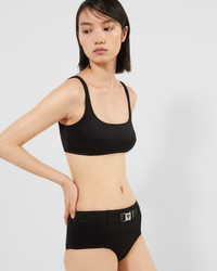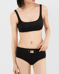 This bikini bottom made of interlock fabric has a high-waisted design with sleek lines, defined by a belt enriched with the triangle logo. - Product code: 70216_13SV_F0002_S_231 - Lined briefs - High-waisted fit - Removable belt with logo-engraved buckle - Imported - The model is 177 cm tall and wears a size 38 MATERIALS Main material: 10% elastane 90% recycled polyester