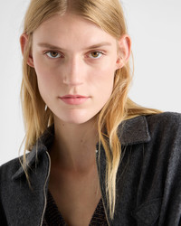 This blouson jacket combines craftsmanship and creative design. Clean lines and the emblematic triangle define the timeless style. - Product code: 138642_1ZCF_F0480_S_OOO - Menswear fit - Long sleeves - Shirt-style collar - Ribbed knit cuffs - Zipper closure - Fabric triangle on the front - Drawstring hem - Angled zipper pockets - Pressed garment - Imported - The model is 180 cm tall and wears a size 38 Height: 64cm MATERIALS Main material: 30% cashmere 70% virgin wool