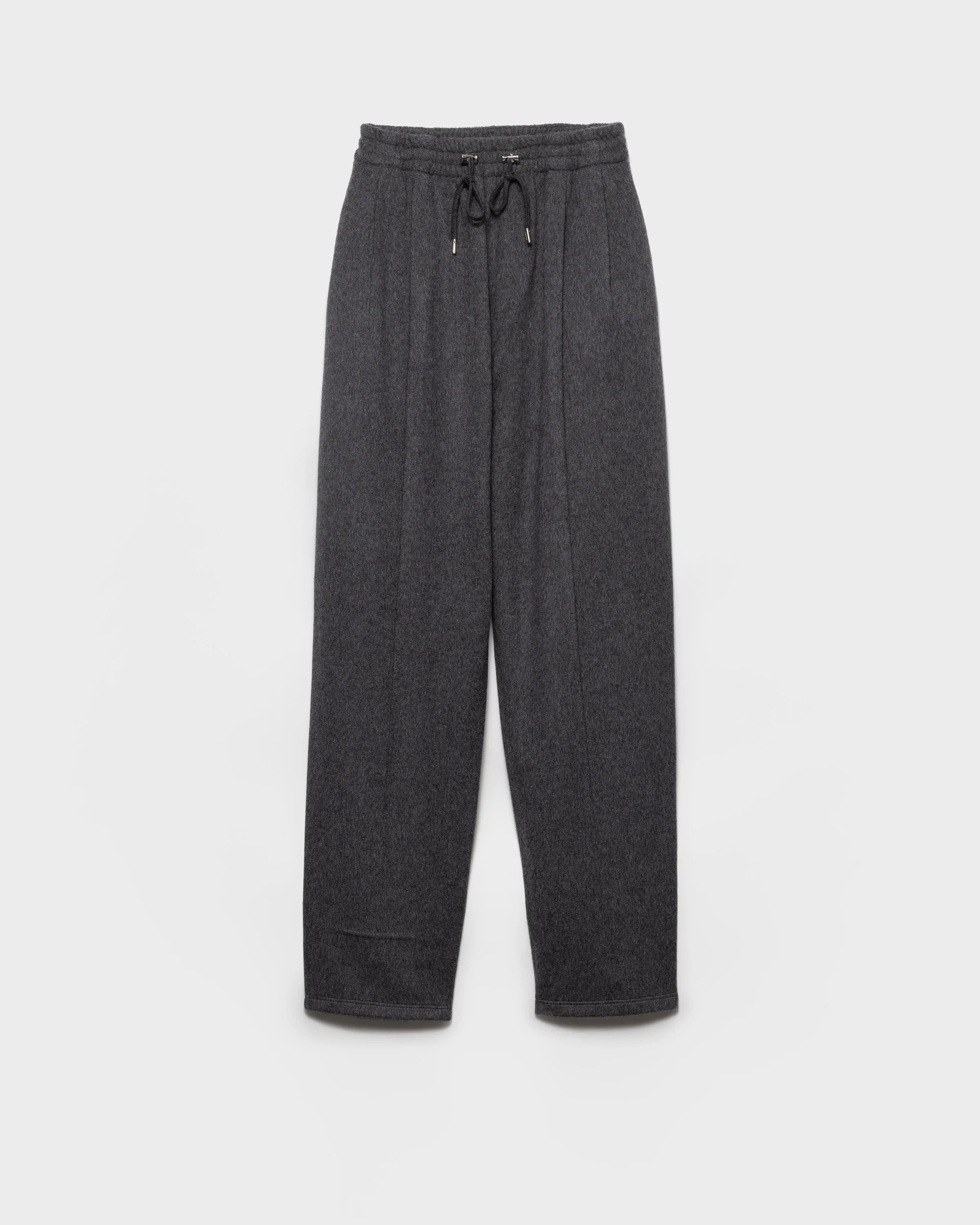 These joggers are reinterpreted with elegance: soft lines and fine fabrics celebrate Prada's innovative spirit and sartorial savoir-faire. - Product code: 132411_1ZCF_F0480_S_OOO - Jogger fit - Elasticized drawstring waistband - Inseam pockets - Center-back fabric triangle - Pressed garment - Imported - The model is 180 cm tall and wears a size 38 Height: 110cm MATERIALS Main material: 30% cashmere 70% virgin wool