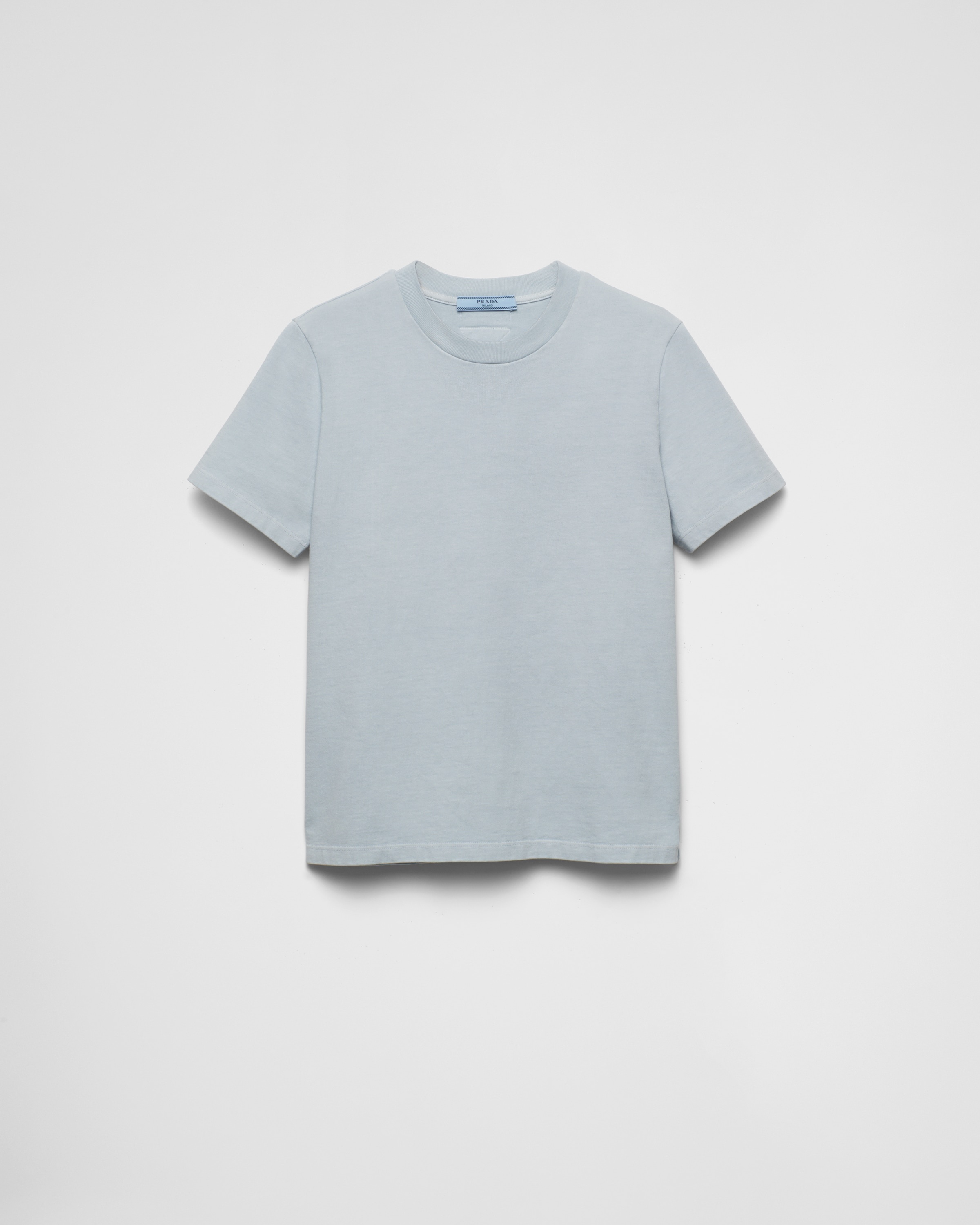 This short-sleeved straight fit tee has a sleek silhouette characterized by the ribbed knit crew neck and side slits. The fabric triangle reinterpreted with a conceptual design completes the style along with the sartorial label. - Product code: 3548B_145S_F0M10_S_OOO - Straight fit - Ribbed knit crew neck - Fabric triangle logo with sartorial label - Garment dyed - Side slits - Imported - The model is 180 cm tall and wears a size 38 Height: 56cm MATERIALS Cotton