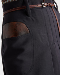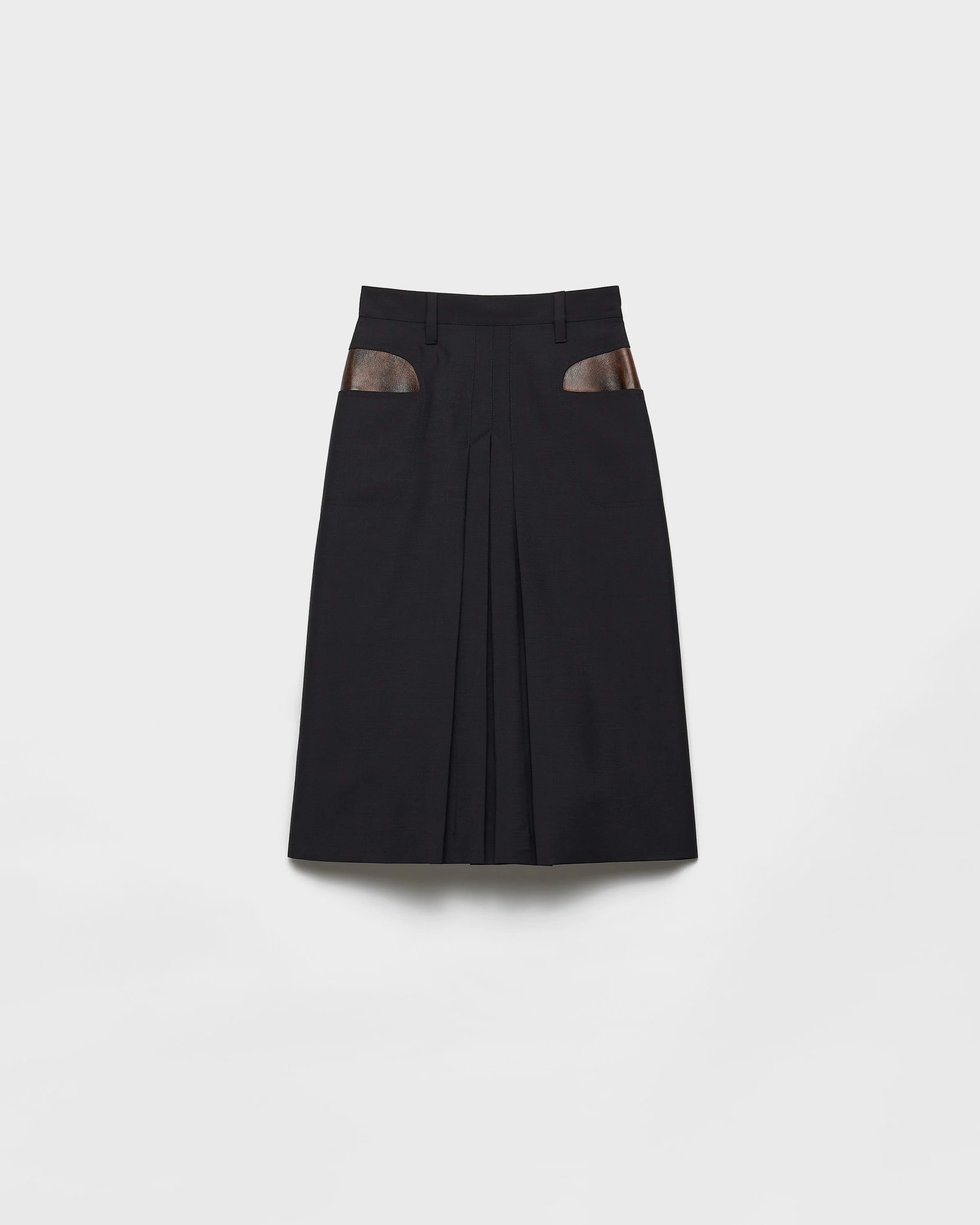 Defined by a structured silhouette and modernist design, this midi skirt features straight lines and refined details. Crafted from kid mohair, one of the brand’s signature fabrics, it’s elevated by contrast pockets with leather inserts. - Product code: P132WE_12I1_F0008_S_OOO - Straight fit - Lined garment - Front inverted pleat slit - Back closure with hook and zip - Front topstitched pockets with leather insert - Imported - The model is 180 cm tall and wears a size 38 Height: 75cm MATERIALS Main material: 60% mohair 40% virgin wool