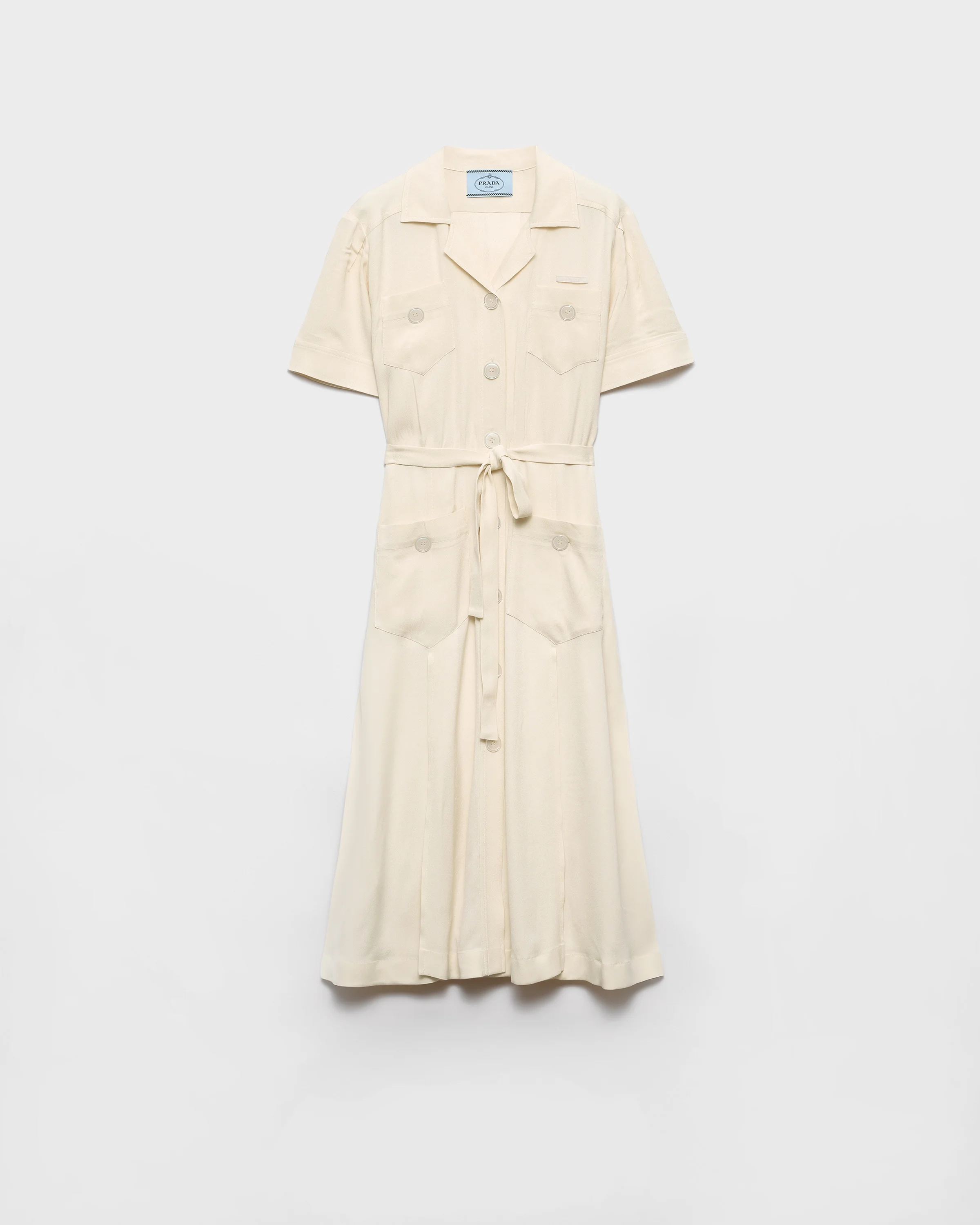 The romantic and delicate allure of lace defines this shirt dress with vintage details. A play of transparencies animates the light style enriched with the bowling collar and completed by a belt that enhances the sophisticated silhouette. - Product code: P3P78G_17XH_F0304_S_OOO - Shirt dress silhouette - With slip - V-neck - Bowling collar - Center front button closure - Short sleeves - Patch pockets on the front - Fabric logo - Flared hem - Imported - The model is 176 cm tall and wears a size 38 Height: 120cm MATERIALS Main material: 35% cotton 35% polyamide 30% viscose
