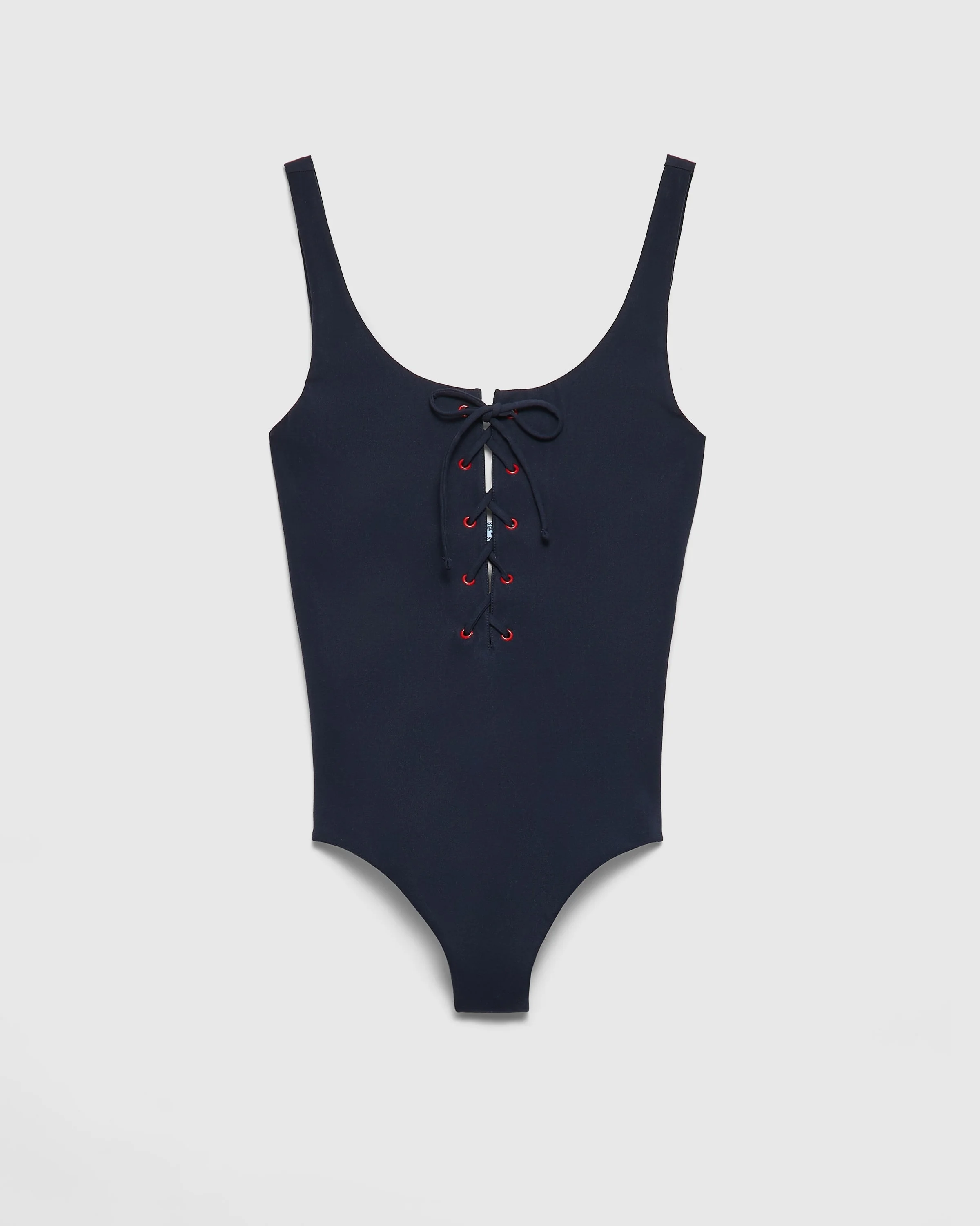 This one-piece stretch jersey swimsuit with its soft, comfortable fabric is enhanced by the romantic note of the lacing on the front. - Product code: 70247_16UM_F0008_S_OOO - Lined - Fabric triangle and sartorial logo label - Imported - The model is 180 cm tall and wears a size 38 MATERIALS Main material: 64% cotton 36% elastane