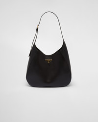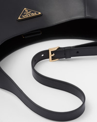 A bold and refined silhouette characterizes this leather shoulder bag with fine details. The geometric construction contrasts with soft lines to create a modern and elegant yet sporty bag, an expression of the hybrid concept and part of the Prada's aesthetic code. - Product code: 1BC181_2AIX_F0002_V_OOO - Adjustable leather handle - Metal hardware - Enameled metal triangle logo on the front - Magnetic clasp - Nappa lining - Height: 30cm - Width: 40cm - Length: 9cm - Imported MATERIALS Leather