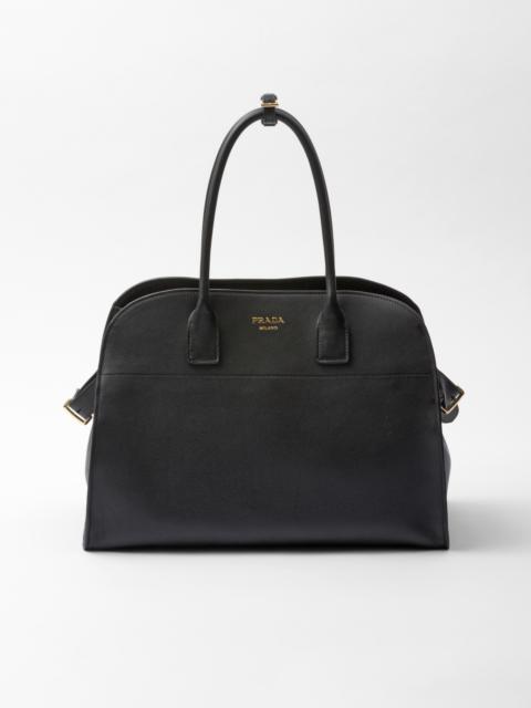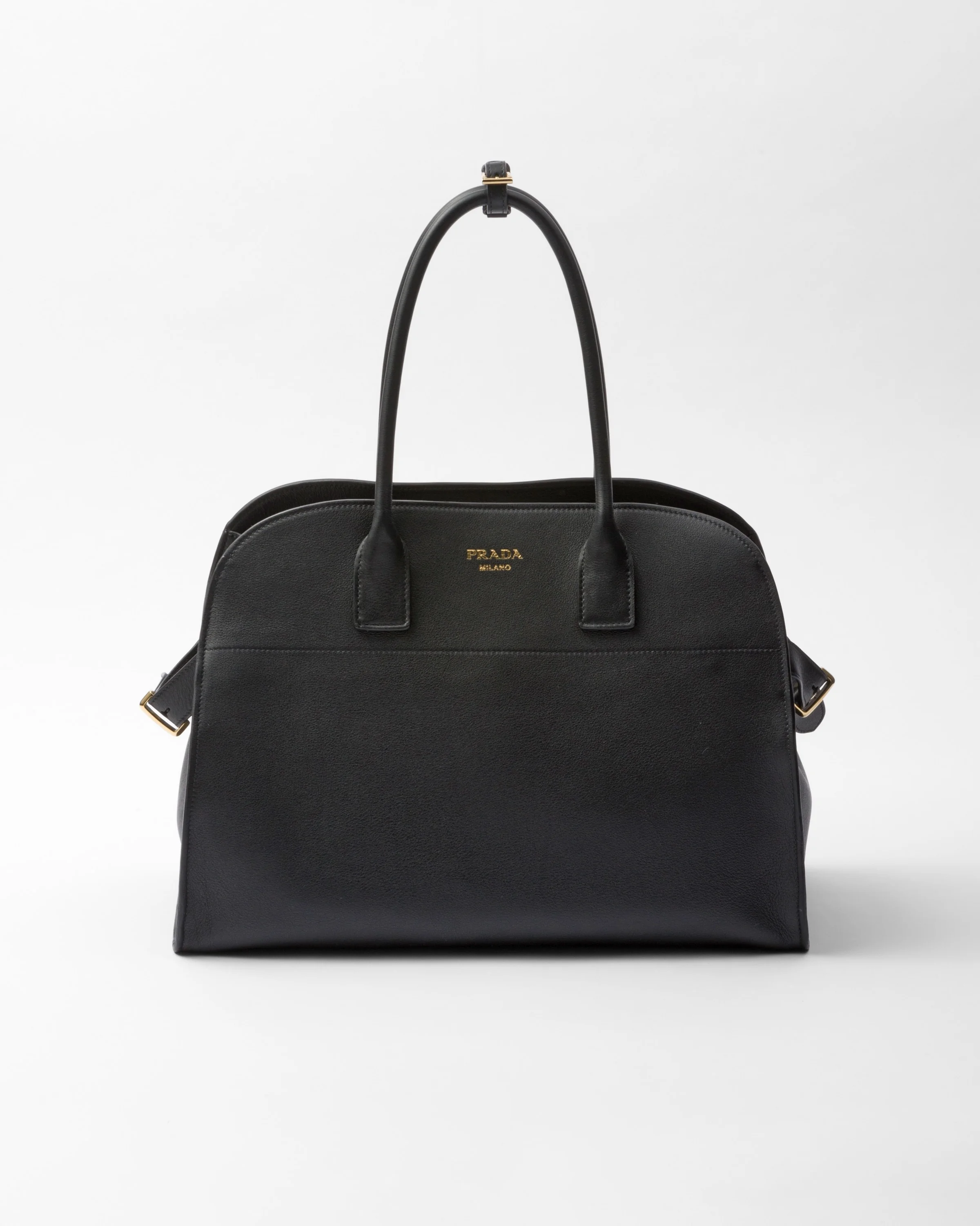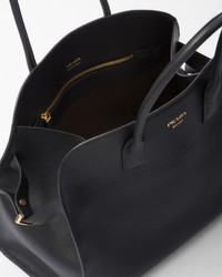 This tote bag with a structured silhouette has a modern character and sophisticated allure. The roomy style characterized by the large, convenient opening has sleek, minimalist lines emphasized by the buttery feel of soft grain leather. The pragmatic accessory is enriched with simple yet refined details, an expression of the brand's artisanal know-how. The design brightened by metal hardware is completed by the elegant signature of the lettering logo that enhances the refined simplicity of the bag. - Product code: 1BG508_2CYS_F0002_V_OOO - Leather handles, drop 18 cm - Metal hardware - Lettering logo embossed on the front - Cotton fabric lining with three pockets, including one with zipper - With purse feet - Imported Height: 29cm Width: 40cm Length: 20cm MATERIALS Main material: Calfskin
