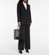 Large leather-trimmed mesh tote