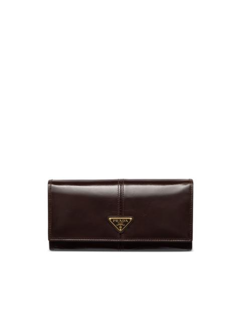 large leather wallet Highlights - Black - Calf leather - Smooth grain - Foldover top with press-stud fastening - Enamel triangle logo - Gold-tone hardware - Leather lining - Zip-fastening compartment - Internal card slots - Internal logo stamp Composition Outer: Calf Leather 100% Lining: Leather 100%
