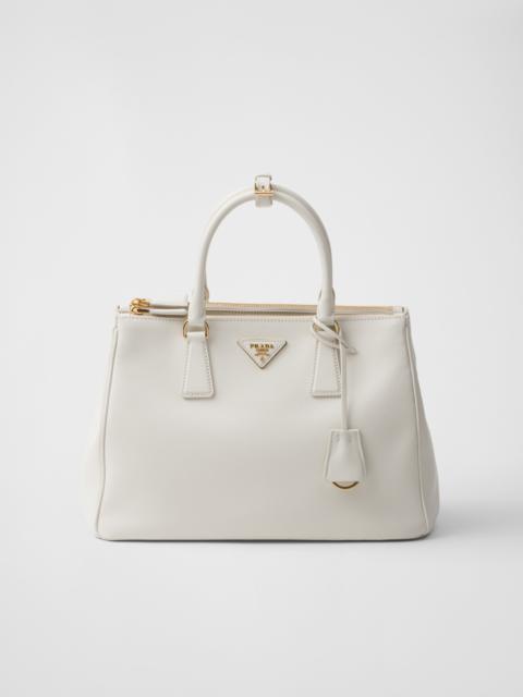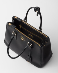 The sophisticated and timeless Prada Galleria bag combines industrial precision and refined, meticulous workmanship that is inherent in the brand's DNA. Composed of over 80 separate pieces assembled by hand, the style celebrates the historic store opened in 1913 in Galleria Vittorio Emanuele II of Milan. The leather accessory, characterized by the iconic three compartments and gold-tone metal hardware, is completed with the emblematic triangle logo. - Product code: 1BA274_2CYS_F0002_V_YO0 - Leather handles - Detachable, adjustable leather shoulder strap Maximum length 120 cm - Minimum length 110 cm - Maximum drop 60 cm- Minimum drop 55 cm - Removable leather key ring - External zipper pockets - Metal hardware - Leather triangle with metal lettering logo on the front - Side snap closure - Nappa leather interior with two pockets, including one with zipper - Leather purse feet - Imported Height: 22.5cm Width: 32cm Length: 13.5cm MATERIALS Main material: Calfskin