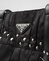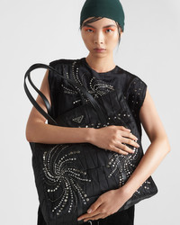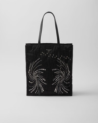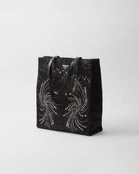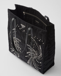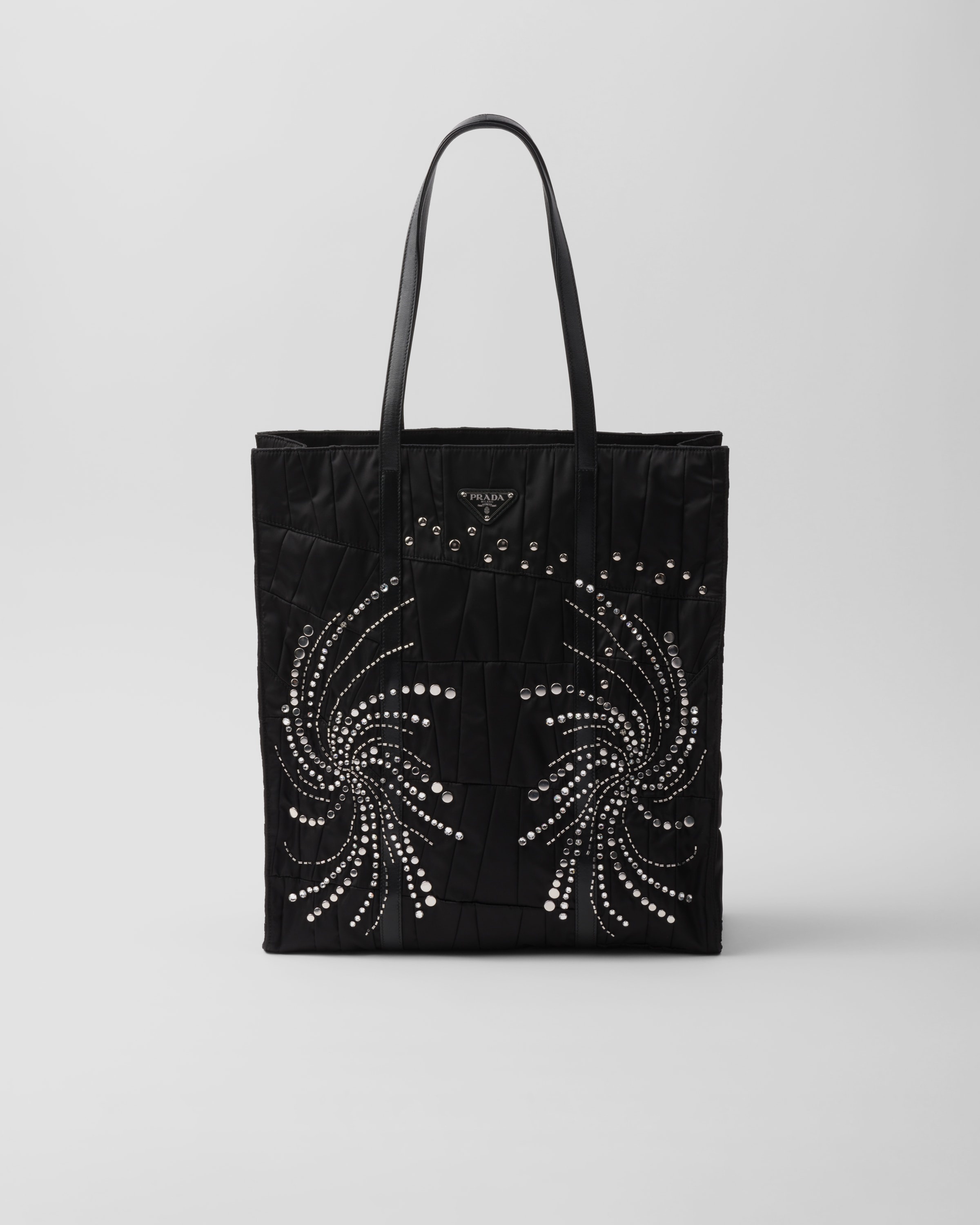 This tote bag combines an ample silhouette with sleek geometric lines and unique and precious details. Made of Re-Nylon, the innovative regenerated nylon fabric, the bag is characterized by the refined patchwork motif and enhanced with shiny handmade embroidery reminiscent of elegant art deco embellishments. The refined design, completed with leather handles, is decorated with the iconic enameled metal triangle logo. For sustainable care to preserve the product's characteristics and reduce microfiber shedding, we recommend not washing the item too often. Let the product air out after every use and have it dry cleaned at a specialized ecological dry cleaners. - 商品品番: 1BG457_2CZM_F0002_V_OO1 - Nappa leather handles - Metal hardware - Enameled metal triangle logo on the front - Logo-print Re-Nylon lining with double zipper pocket - インポート 高さ: 42cm 幅: 39cm マチ: 13cm MATERIALS Fabric/Leather