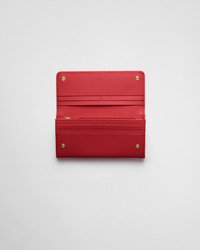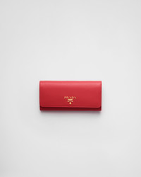 Decorated with Prada lettering, this flap wallet is crafted in Saffiano leather. The double snap closure opens to various compartments and pockets. - Product code: 1MH132_QWA_F068Z - Snap closure - Metal lettering logo - Two bill compartments - Ten card slots - Four interior pockets - Internal coin pocket with zipper - External coin pocket with zipper - Moire and Saffiano leather lining - Imported Height: 9.5cm Width: 18.7cm MATERIALS Main material: Calfskin