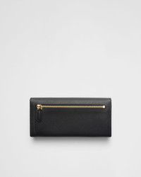 Decorated with the triangle Prada logo, this flap wallet is crafted in Saffiano leather. The snap closure opens to various card slots and pockets. - Product code: 1MH132_QHH_F0002 - Snap closure - Enameled metal triangle logo - Two bill compartments - Ten card slots - Four interior pockets - Internal coin pocket with zipper - External coin pocket with zipper - Moire and Saffiano leather lining - Imported Height: 9.5cm Width: 18.7cm MATERIALS Main material: Calfskin