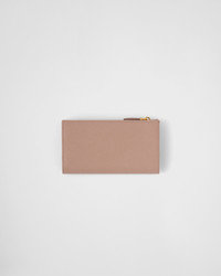 Sleek lines distinguish this wallet in iconic Saffiano leather. The accessory with snap closure and metal triangle logo has pockets and slots inside. - Product code: 1ML009_QHH_F0236 - Snap closure - Enameled metal triangle logo - One bill compartment - Twelve card slots - Four document pockets - Internal coin pockets with zipper - Moire and Saffiano leather lining - Imported Height: 16cm Width: 9.5cm MATERIALS Main material: Calfskin
