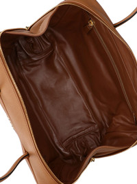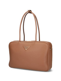 PRADA LARGE BOWLER BAG IN BROWN CALF LEATHER, TWO TOP HANDLES, DOUBLE ZIP CLOSURE, ENAMELED METAL TRIANGLE LOGO ON THE FRONT, FRONT KEYRING, GOLD METAL HARDWARE DETAILS, INNER ZIP POCKET, MAIN INNER COMPARTMENT. PRODUCT INFO PRODUCT CODE 1BB128 ONO 2DKVF03V8 COMPOSITION: 100% CALF LEATHER SIZE AND FIT: H 23 X W 34 X 10 CM MADE IN: ITALY