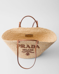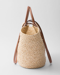 This modern and sophisticated tote bag evokes a summery mood thanks to the combination of raffia-effect woven fabric and leather details. The contrasting lettering logo on the front enhances the roomy accessory with double handles for carrying by hand or worn over the shoulder. - Product code: 1BG470_2CXQ_F0A5T_V_GOO - Embossed leather logo patch - Double leather handles for use as a handbag or shoulder bag - Leather lettering logo in the front - Unlined interior - Height: 25cm - Width: 25cm - Length: 15cm - Imported MATERIALS See material in product name