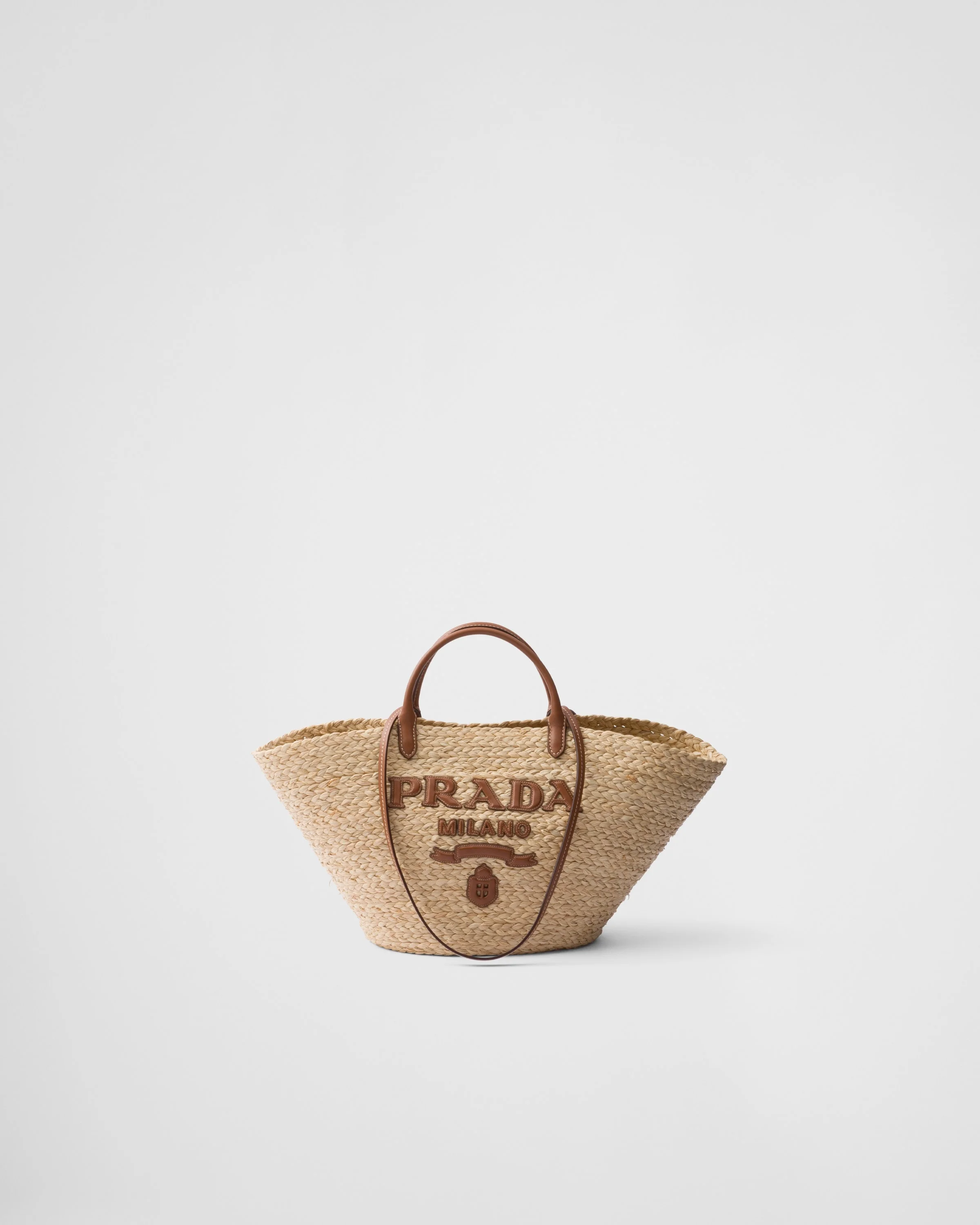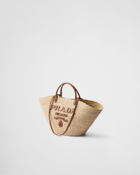 This modern and sophisticated tote bag evokes a summery mood thanks to the combination of raffia and leather details. The contrasting lettering logo on the front enhances the roomy accessory with double handles for carrying by hand or worn over the shoulder. - Product code: 1BG470_2CXQ_F0A5T_V_GOO - Embossed leather logo patch - Double leather handles for use as a handbag or shoulder bag - Leather lettering logo in the front - Unlined interior - Imported Height: 25cm Width: 25cm Length: 15cm MATERIALS Main material: Raffia