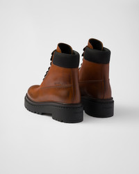 These booties made of leather with Re-Nylon details have a versatile design with sturdy yet lightweight rubber soles that complete the sporty and functional style. - Product code: 1T704N_3LPP_F0046_F_G055 - Leather lining - Hot-stamped logo - Polyester laces - Boot leg: 14 cm - Monoblock rubber sole with lug tread and hot-stamped logo - Double rubber welt with stamped notch effect - Imported MATERIALS Fabric/Leather