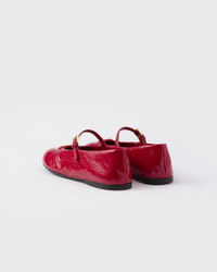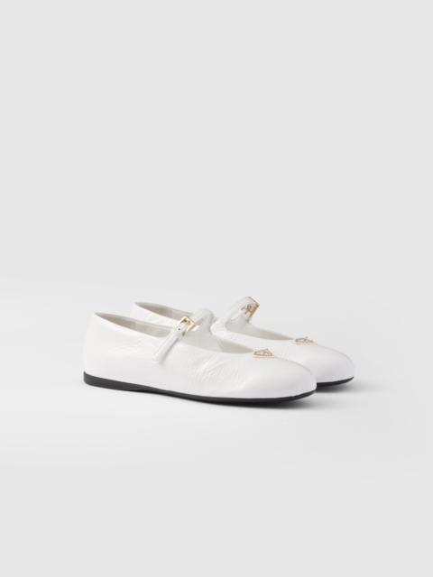 These ballet flats with elegant, feminine charm have a tapered silhouette enriched by the refined touch of naplak patent leather. Classic lines and sophisticated details define the round toe shoes with a rubber sole embellished by the enameled metal triangle logo. - Product code: 1F793N_H27_F0E06_F_005 - Upper with strap and logo-engraved metal buckle - Enameled metal triangle logo - Monoblock rubber sole, 05 mm, with hot-stamped logo - Imported MATERIALS Main material: Lambskin