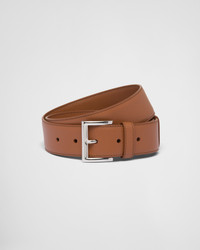 The tip of this leather belt features an iconic, enameled-metal triangle logo, which appeared for the first time on trunks designed by Mario Prada in 1913. - Product code: 1CC545_8NQ_F0046 - Metal buckle - Enameled-metal triangle logo - Imported Height: 3.5cm MATERIALS Main material: Calfskin