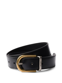leather belt Highlights - Black - Gold-tone buckle fastening - Polished silver-tone accents - Multiple punched holes - Sleek finish Composition Calf Leather 100%
