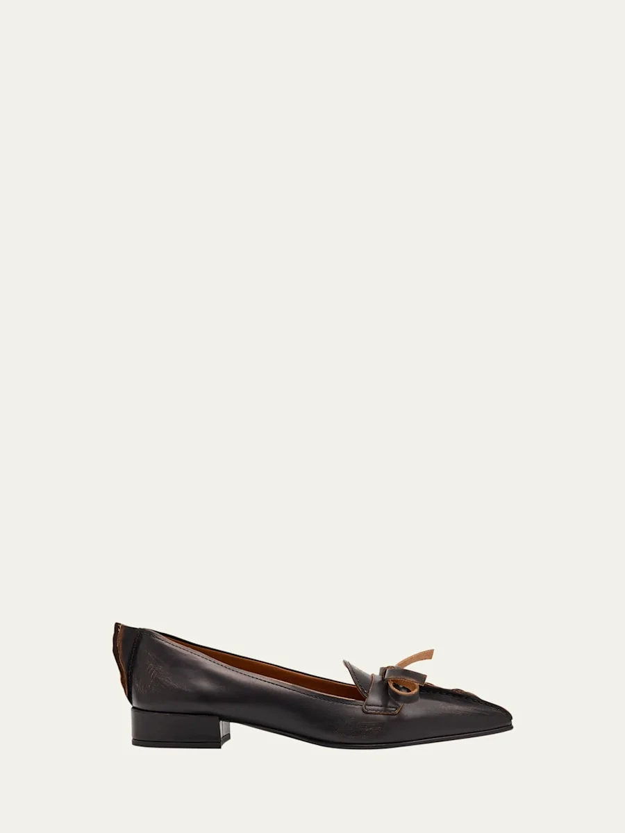Leather Block-Heel Loafers