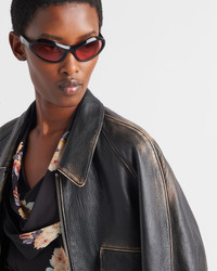 This blouson jacket combines contemporary stylistic codes and skilled craftsmanship in a new design with refined details. A belt with simple lines enriches the style made with a particular process that gives the leather an aged effect. The triangle logo, reinterpreted with a conceptual design, completes the garment with a distinctive aesthetic. - 商品货号: 58A170_1455_F0002_S_OOO - Lined - Regular fit - Front closure with zipper and belt - Shirt-style collar - Raglan sleeve - Flapped pockets - Leather triangle logo on the center back - Vintage treatment - 产品标签信息 - The model is 180 cm tall and wears a size 38 高度: 62cm MATERIALS Leather