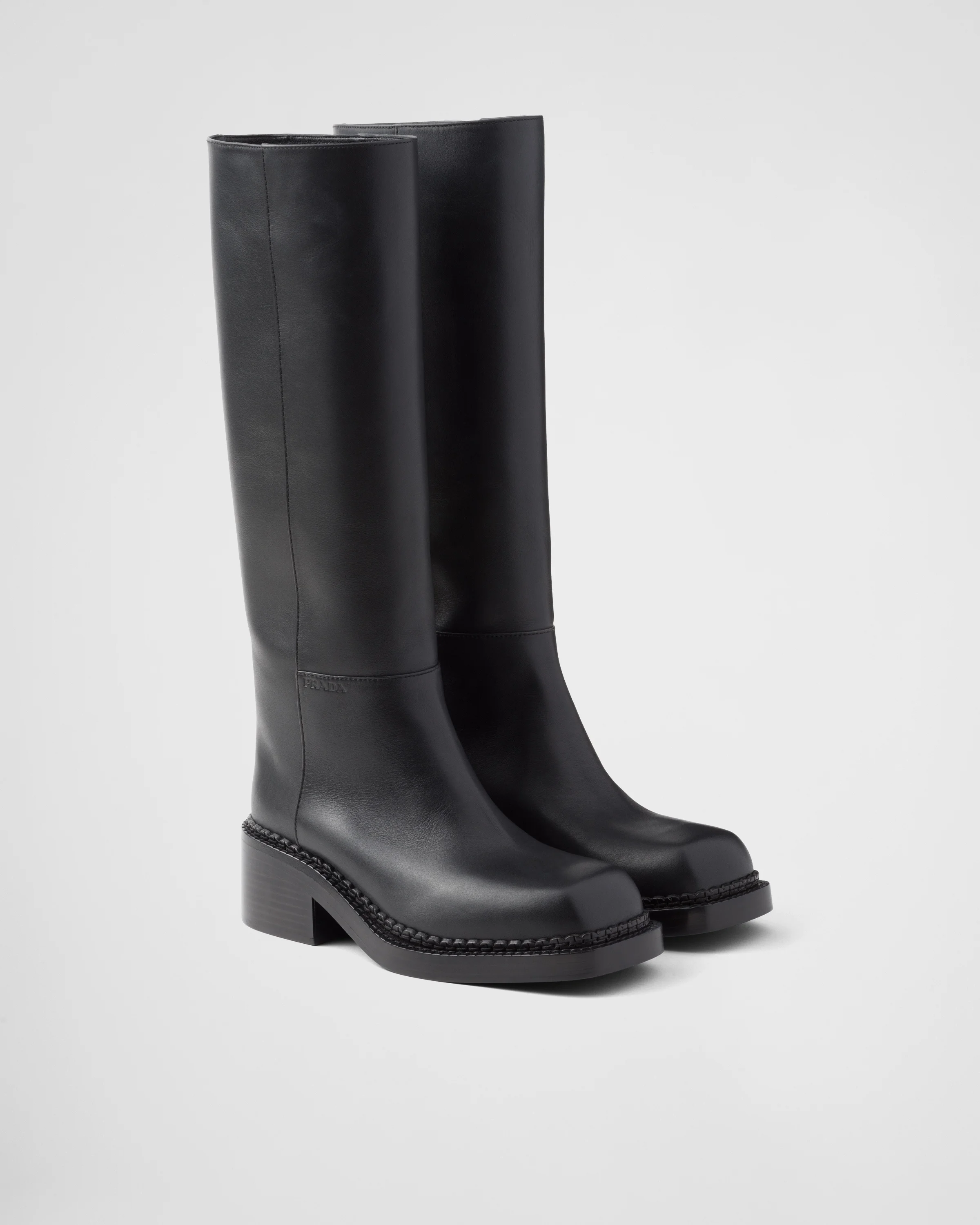 A combination of retro details and contemporary lines defines the silhouette of these leather boots, an expression of a dual aesthetic that blurs the boundaries between past and present. - Product code: 1W746N_070_F0002_F_D055 - Leather lining - Hot-stamped logo - Boot leg: 39 cm - Leather a and monoblock rubber sole with hot-stamped logo - Heel height: 55 mm - Imported MATERIALS Main material: Calfskin