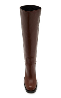 Made in Italy from smooth calf leather, these boots have a wide, loose calf silhouette that rises to a knee height. They're set atop a chunky platform heel to ensure easy footing whether you're grabbing dinner with friends or running errands in the day. PRODUCT DETAILS - Heel height measures approximately 90mm/ 3.5" - Zip fastening along side - Composition: calfskin leather - Made in Italy