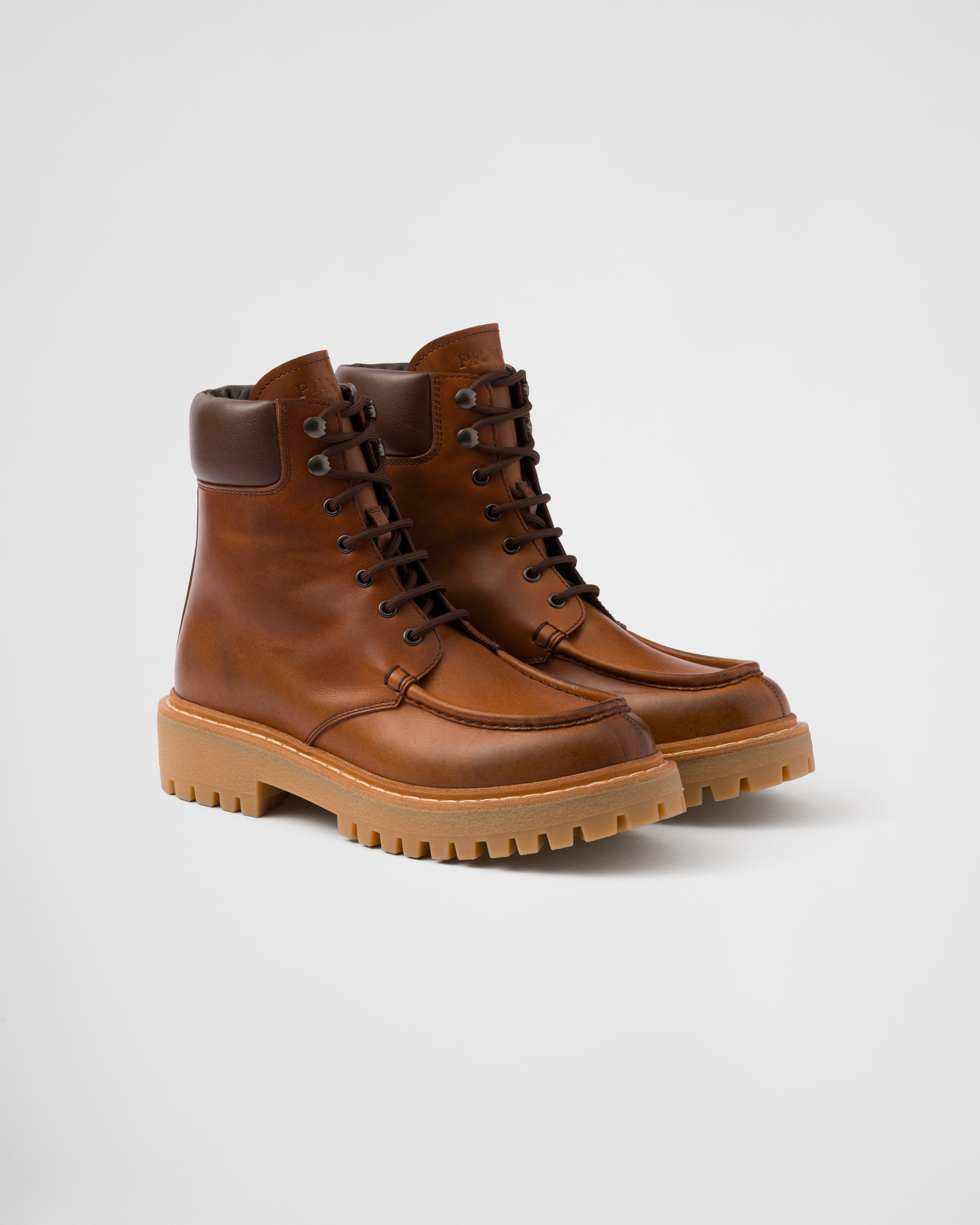 These leather lace-up boots, reinterpreting a sporty and functional silhouette and featuring chunky rubber soles, are characterized by their finely crafted details that give the design a refined character. - 商品品番: 1T803N_070_F0046_F_G045 - Upper with metal hooks - Leather lining - Laces closure - Boot leg: 14 cm - Rubber sole, 45 mm - Lug tread - Removable leather-covered insole - インポート MATERIALS Leather