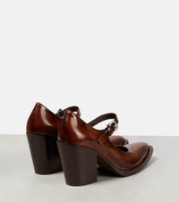 The Mary Jane pumps from Prada are equal parts elegant and fashion-forward. Set atop sturdy block heels, the pair is made from brushed leather with modern pointed profiles and buckled straps. Product Details - Upper: leather - Lining: leather - Sole: leather insole and sole - Toe shape: pointed toe - Made in Italy - Includes: shoe box, dust bag - Designer color name: Tobacco Fume - Closure: buckle fastening - Hardware color: silver - Item number: P00789436 Size & Fit - True to size - Slightly narrow at the back - Stiff material - European sizes - 9cm-3.5" heel (size EU 38) - 1cm-0.5" platform (size EU 38)