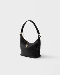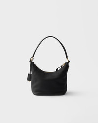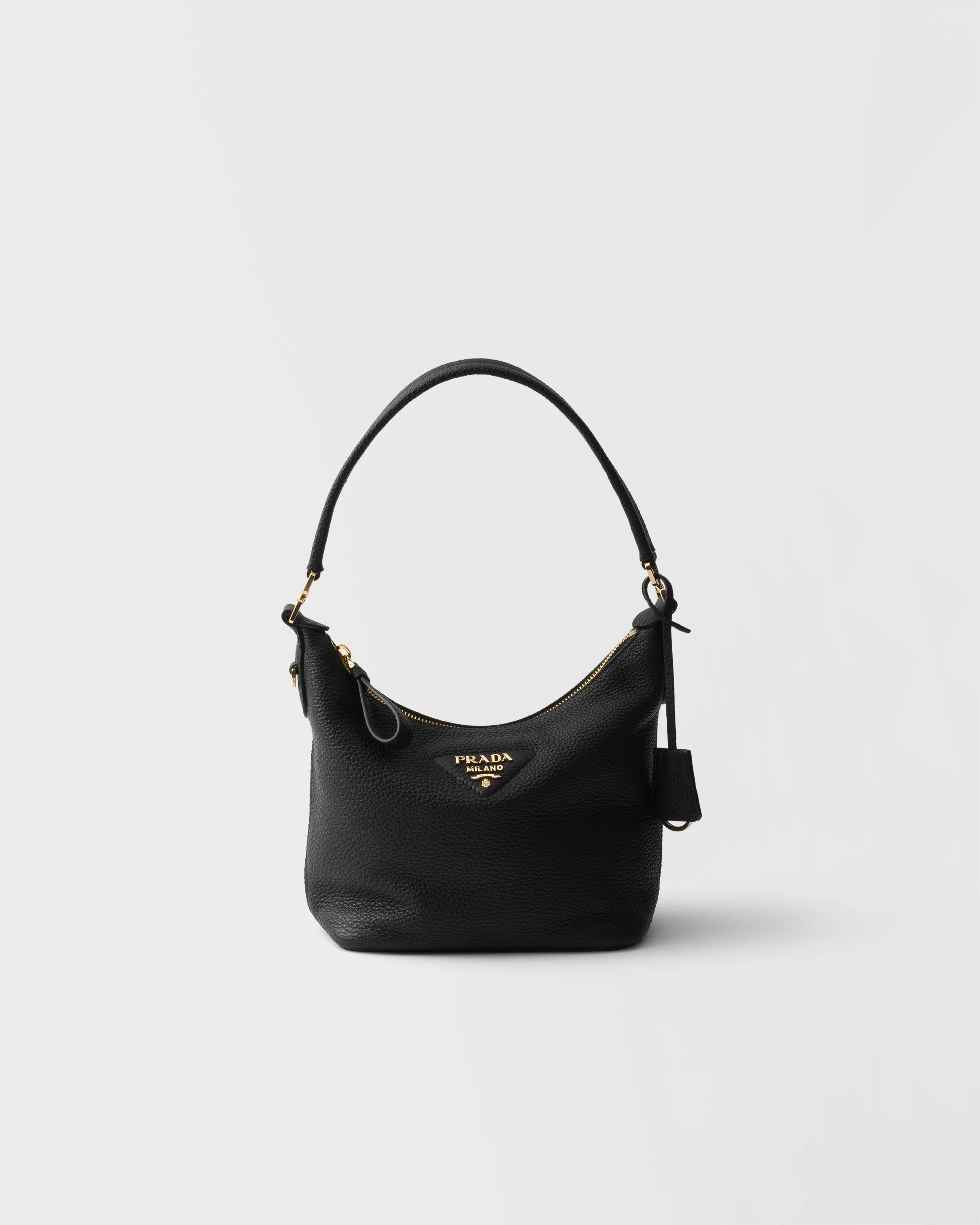 This soft hobo bag with a compact design is made of leather with an irregular grain that has a natural effect and pragmatic character. The encounter between artisan craftsmanship and contemporary sensibility defines this sophisticated and versatile accessory. - Product code: 1BC278_2DKV_F0632_V_ONO - Leather handle, drop 25 cm - Removable leather key ring - Metal hardware - Metal lettering logo on the front - Zipper closure - Logo-print nylon lining with zipper pocket - Imported Height: 20cm Width: 18cm Length: 9.5cm MATERIALS Main material: Calfskin