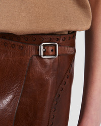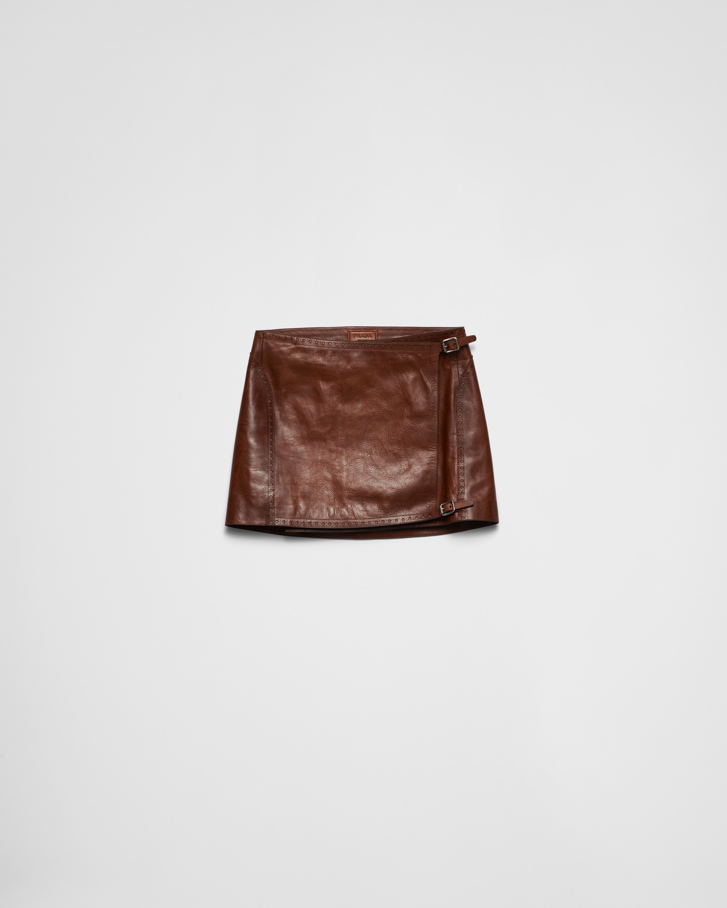 Unusual influences and details inspired by the world of footwear define this miniskirt with a unique design. Made of leather with a deliberate aged effect, the style is finished with a refined brogue motif and refined straps that complete the sophisticated silhouette. - 商品品番: 51879_149J_F0BW5_S_OOO - Lined garment - Mini silhouette - Side closure with buckles - Vintage treatment - Perforated waistband and hem - インポート - The model is 179 cm tall and wears a size 38 高さ: 38cm MATERIALS Leather