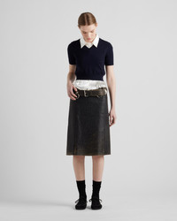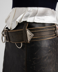 Unexpected contrasts between sophisticated lines and bold details define this skirt with a distinctive aesthetic. An eclectic exercise in style, it combines refined leather crafting with a vintage treatment and the strong character of the metal rings and studs. - Product code: 51905_16UK_F0002_S_OOO - Pencil silhouette - Back zipper closure - With belt - Vintage treatment - Removable slip - Imported - The model is 179 cm tall and wears a size 38 Height: 63cm MATERIALS Main material: Calfskin