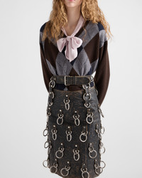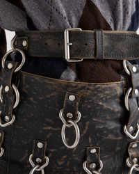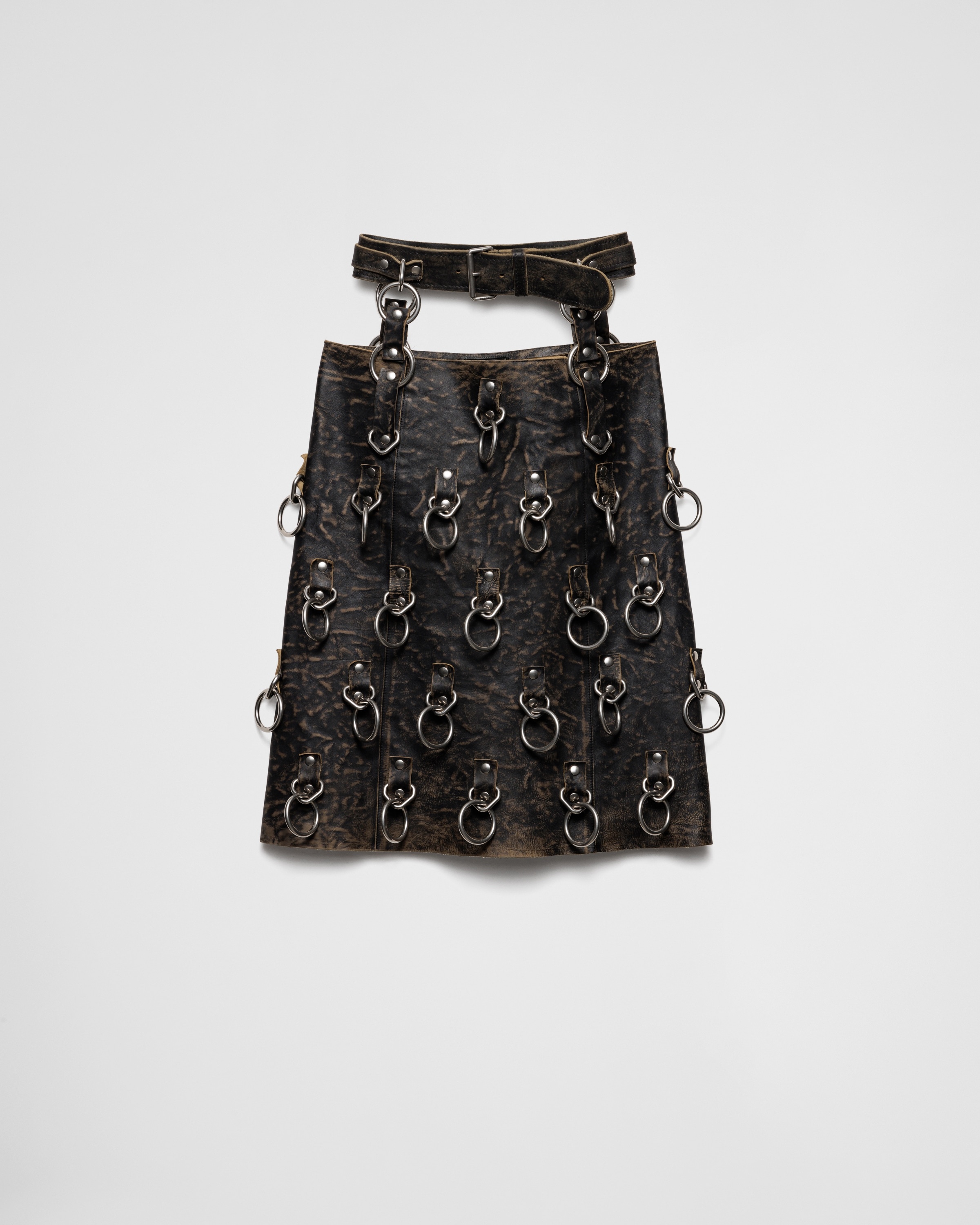 Leather miniskirt with metal rings