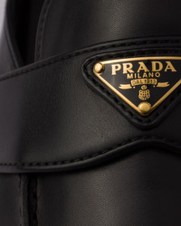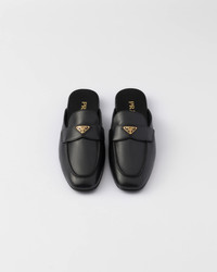 These soft leather slippers feature a streamlined silhouette with a casual attitude, embellished by the enameled metal triangle logo. - Product code: 1D766N_070_F0002_F_010 - Upper with leather band - Enameled metal triangle logo - Leather and monoblock rubber sole with hot-stamped logo - Heel height 10 mm - Imported MATERIALS Main material: Calfskin