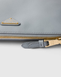 With its geometric shape, this leather pouch blends modern elegance and functionality. - Product code: 1BC238_2CYS_F0384_V_OVO - Zipper closure--Enameled metal triangle logo--Adjustable leather handle--Logo-print nylon lining with zipper pocket - Imported Height: 14cm Width: 24.5cm MATERIALS Main material: Calfskin