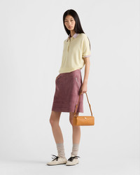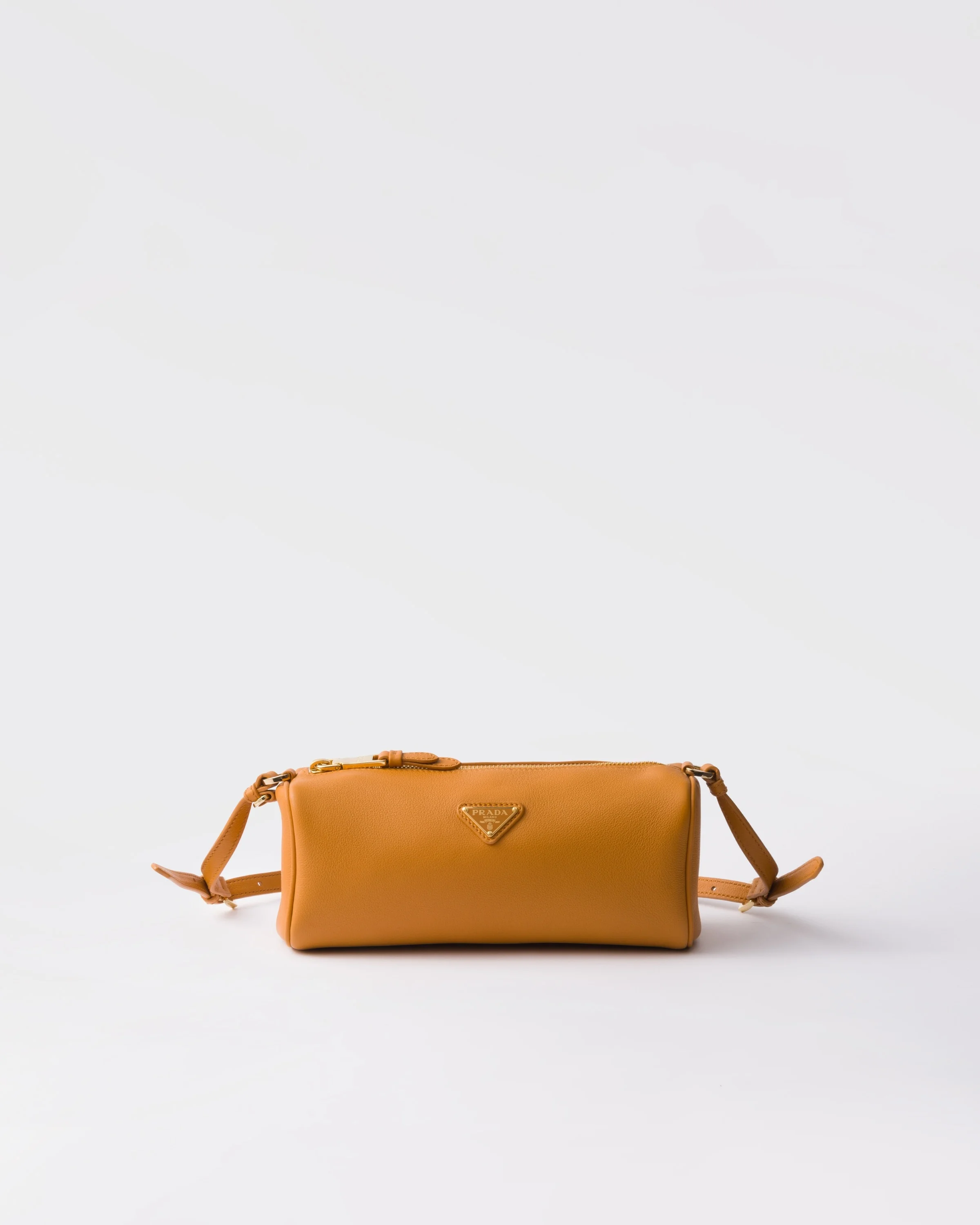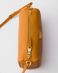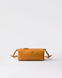 With its geometric shape, this leather pouch blends modern elegance and functionality. - Product code: 1BC239_2CYS_F0287_V_OVO - Zipper closure--Enameled metal triangle logo--Adjustable leather handle--Logo-print nylon lining with zipper pocket - Imported Height: 9cm Width: 22cm Length: 7.5cm MATERIALS Main material: Calfskin