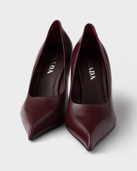 These leather pumps with a sophisticated, feminine design is a contemporary reinterpretation of a timeless silhouette. The style plays with bold, elongated lines that run from the pointy upper to the tapered heel. The refined simplicity of the shapes is enhanced by the lustrous finish of satin that enriches the shoe with a modern and sophisticated touch. - Product code: 1I484N_070_F0007_F_A085 - Leather and rubber sole with metal lettering logo - Leather-covered heel, height: 85 mm - Imported MATERIALS Main material: Calfskin