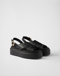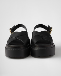 Crafted from soft leather with a crisscross design, these sandals are characterized by their lightweight rubber flatform sole and small gold-tone buckle. - Product code: 1X925N_7V6_F0002_F_055 - Upper with heel strap and logo-engraved metal buckle - Screen-printed logo - Monoblock rubber flatform sole, 55 mm, with lug tread and hot-stamped logo - Notched-effect double welt - Imported MATERIALS Main material: Calfskin