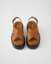 Crafted from soft leather with a crisscross design, these sandals are characterized by their lightweight rubber flatform sole and small gold-tone buckle. - Product code: 1X925N_7V6_F0R1R_F_055 - Upper with heel strap and logo-engraved metal buckle - Screen-printed logo - Monoblock rubber flatform sole, 55 mm, with lug tread and hot-stamped logo - Notched-effect double welt - Imported MATERIALS Main material: Calfskin