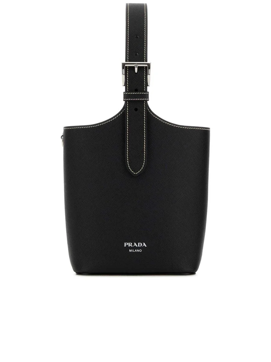 - Colour: Black - Composition: Exterior: 100% Leather Lining: 100% Leather Finishing: Silver metal - Made in: IT - Style ID: 1BE090NZV_F0002 - Measurements: Width: 15cm x Height: 20cm x Depth: 9cm - Shoulder strap length: adjustable from 12cm to 23cm