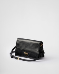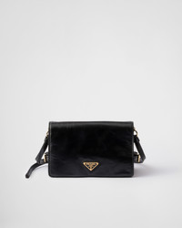 This contemporary and versatile bag is made of glossy leather that enhances the sleek silhouette with a casual attitude, completed by metal hardware and decorated with the iconic triangle logo. - Product code: 1BD082_2CYR_F0002_V_DVJ - Adjustable leather shoulder strap. Maximum length 65 cm - Minimum length 54 cm - Maximum drop 30 cm - Minimum drop 23 cm - Back zipper pocket - Metal hardware - Enameled metal triangle logo - Magnetic closure - Logo-print nylon lining with center flapped compartment - Imported Height: 13cm Width: 22cm Length: 8cm MATERIALS Main material: Calfskin
