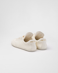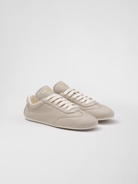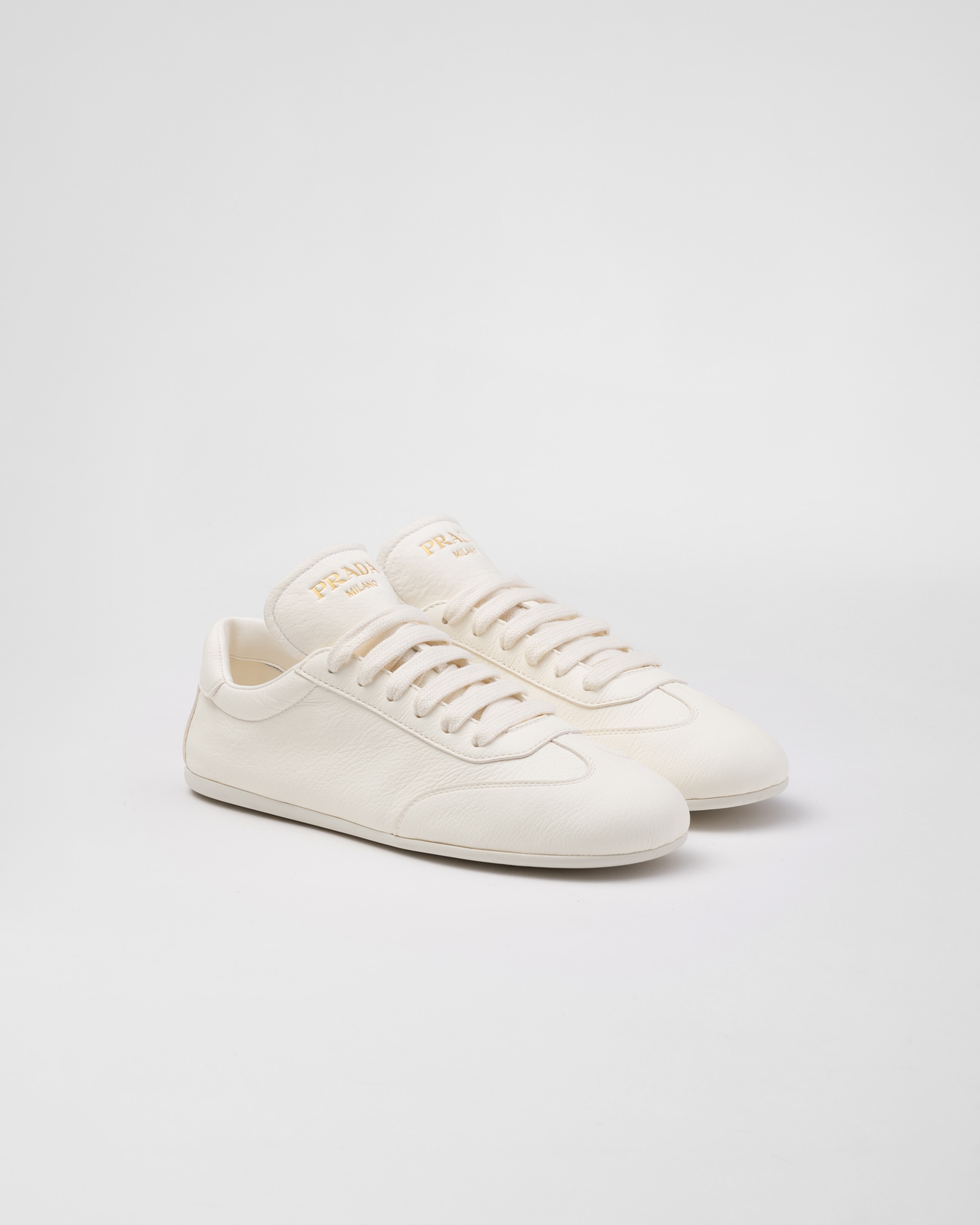 These sleek and refined sneakers combine a sporty inspiration and minimalist lines with contemporary charm. The leather silhouette with a light, thin rubber sole is decorated with the lettering logo embossed on the tongue. - Product code: 1E398N_013_F0304_F_005 - Leather lining - Screen-printed logo on the tongue and heel collar - Closure with cotton laces - Rubber sole, height 05 mm - Tread with geometric pattern - Removable leather-covered insole - Imported MATERIALS Leather