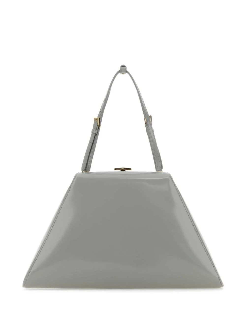 trapeze-shaped tote bag Highlights - Nube grey - Calf leather - Patent finish - Trapeze body - Two adjustable top handles - Clasp fastening - Silver-tone hardware Composition Outer: Calf Leather 100% SIZE & FIT Measurement DEPTH 3.14 in(8 cm) HANDLE 6.29 in(16 cm) HEIGHT 7.48 in(19 cm) WIDTH 13.38 in(34 cm)